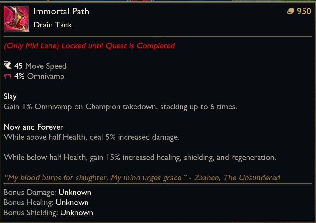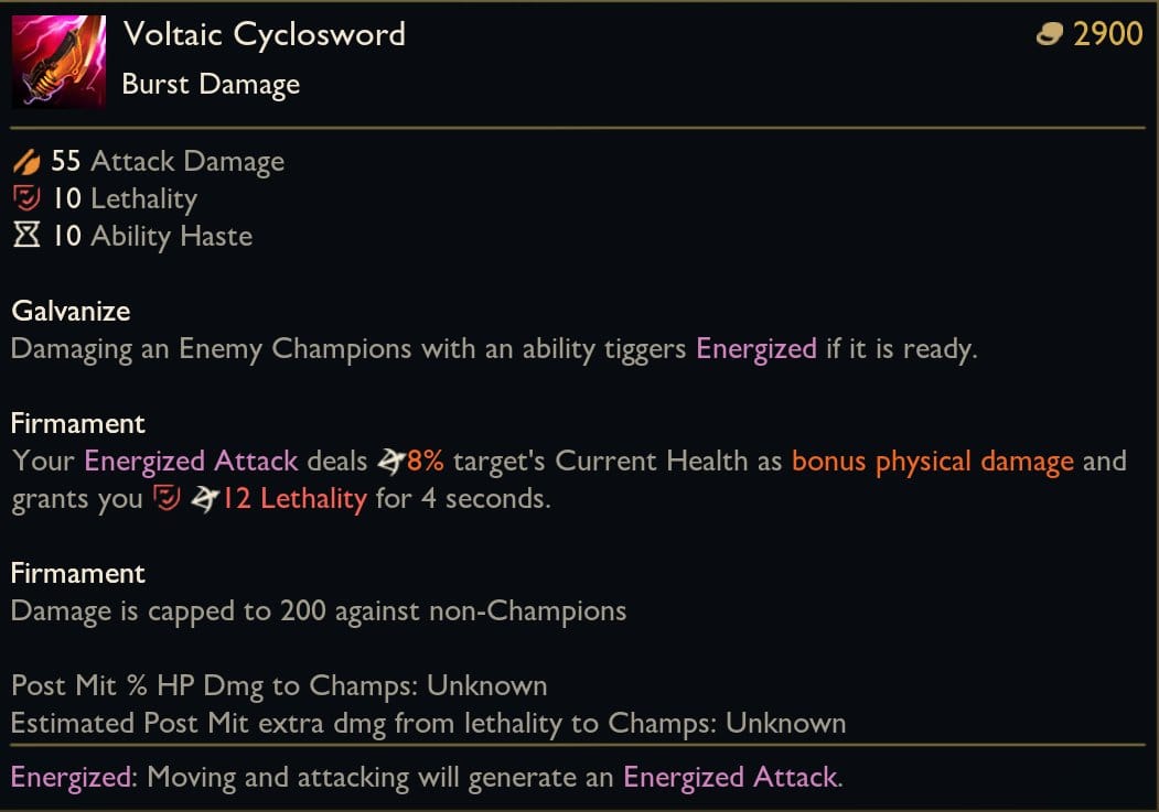 - Damage changed to 10/8% current HP (200 damage cap) and grants 15/12 lethality instead of 100 damage + 99/20% slow